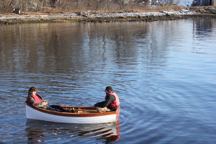 Two men in a boat they built. Rockland, Maine; December 2010
